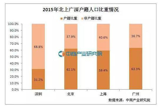 不过,细看各项数据,2015年深圳市户籍人口仅354.99万人,占常住人口的比重为31.2%。是四大一线城市户籍人口不达一半的唯一城市。另外,由于政府的公共资源,比如医疗、教育等,都是以户籍人口数为基数来进行配备的,但是深圳的非户籍人口又数量庞大,就这导致深圳地方政府需要负担起这部分人口的公共服务投入。