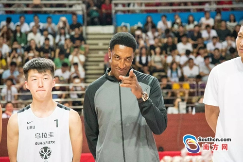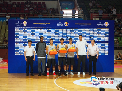 南方网讯(全媒体记者/姚瑶 通讯员/朱小翠)今天,广州高校3×3挑战赛暨2019篮球世界杯预选赛模拟赛在广东工业大学举行。中国国家队主力成员易建联,NBA六届总冠军、名人堂成员斯科蒂·皮蓬来到现场为冠军颁奖。