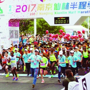 本报讯(通讯员 陈宁 李慧珍 栖文轩 记者 王聪 朱静) 2017南京仙林半程马拉松昨天上午8点鸣枪开跑。在竞走奥运冠军王丽萍的领跑下,来自19个国家和地区的近万名马拉松跑者聚集在仙林羊山公园畔,在环山绕湖的美丽赛道上尽情奔跑,享受运动的乐趣。