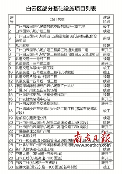 白云区最大的基础设施是白云机场,航空枢纽建设工程引人注目。去年7月29日,广州白云国际机场FBO项目正式开工。FBO列入建设项目,白云区明确提出,确保今年竣工投产。