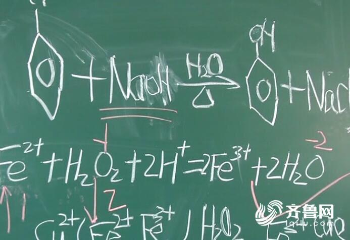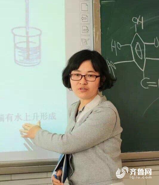 2005年大学毕业后,洪秀英到临清一中做了一名化学老师,今年带高三五班和六班的化学课,一边板书一边讲解,和其他老师不同,这些板书都是洪秀英老师用左手写出来的。自从右手骨折后,左手写板书就成了洪老师的日常上课状态。
