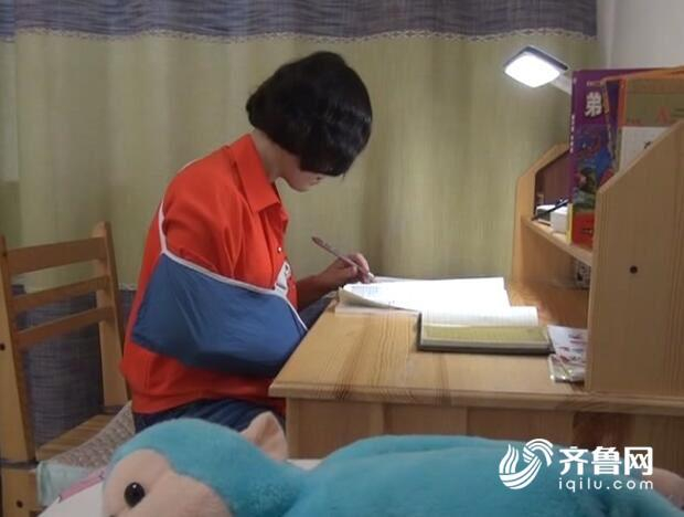 聊城市临清一中高三六班学生翟旭虹说,当看到老师带着伤来给上课的时候,大家不约而同的鼓起了掌。非常的震惊,非常的感动。