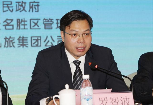 中共阿坝州委常委、九寨沟县委书记罗智波在大赛启动仪式上介绍“熊猫九寨”有关情况