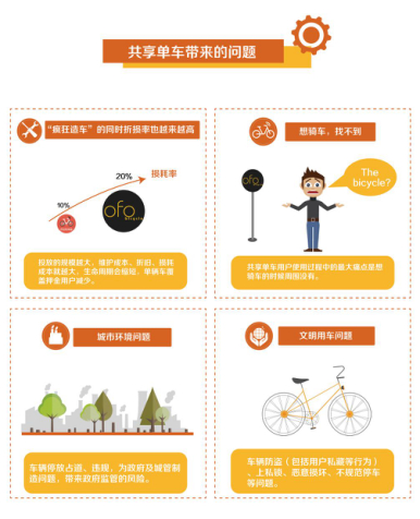 如今,一出门就骑上共享单车去地铁站、公交站,甚至直接骑车去上班,已经成为很多市民新的出行方式。但伴随着各类共享单车的大量投放和用户规模的扩大,乱停违停、儿童骑行、车辆被恶意损毁、巨额资金池等乱象丛生,如何管理共享单车已成为共享单车企业和相关职能部门当下最紧迫的议程之一。