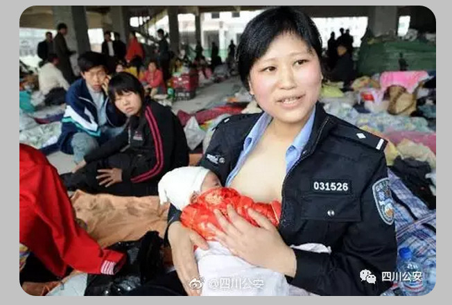 蒋晓娟,"5.12"特大地震中,她将尚不满半岁的儿子托附给自己的父母,全身心地投入到抗震救灾的第一线中去。当她得知许多从北川、平武转移过来的灾民的婴儿吃不到奶粉时,便主动为孤儿哺乳。她的大仁大义书写了人民警察爱人民的动人诗篇,用自己平凡朴实的实际行动对生命进行了最高的礼赞!