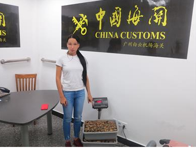 广州海关在白云机场查获22公斤蜜蜡原石