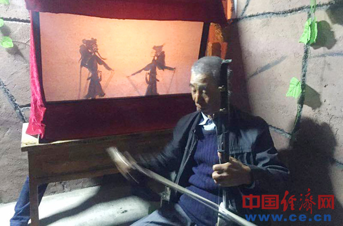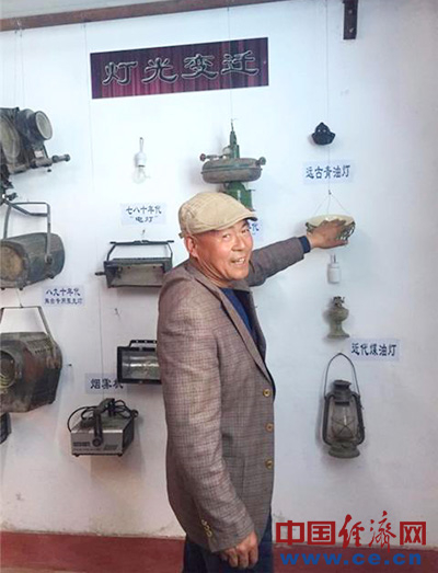 一边听着李金山的故事,一边走进宁夏金山文化产业园的二层小楼。一楼是土窑洞式的土房子,房间虽小里面却别有洞天。有秦腔的各式道具,有从留声机到录音机的播放工具,最独特的就是还有一具保存比较完整的动物化石。关了灯,李金山给大家表演了一段皮影戏,大家纷纷拿起手机相机,记录下这如今已经难得一见的艺术精粹。二楼主要是功能厅,有棋牌室、书画轩、祖先堂、政策屋、党群议事厅。