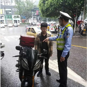 华龙网5月15日11时30分讯 5月13日,江北区公安分局观音桥大队民警在北城天街路段执勤时,一个没有戴头盔的驾驶员骑着辆摩托车飞奔驶来,民警立即示意其靠边停车接受检查。