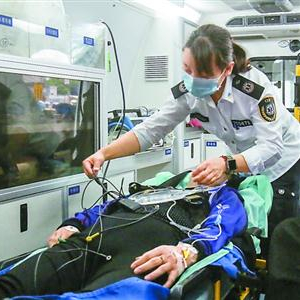 去年底,一位吴女士做家政时突然晕厥,赵炯赶往后发现她的呼吸心跳均已停止,心电监护显示为室颤。她手上不停地实施心肺复苏,患者终于出现自主呼吸,恢复了窦性心律。患者顺利到达医院后抢救顺利。第二天,已可以开口说话的吴女士连连道谢,“你是急救医生,也是一名再世华佗。”