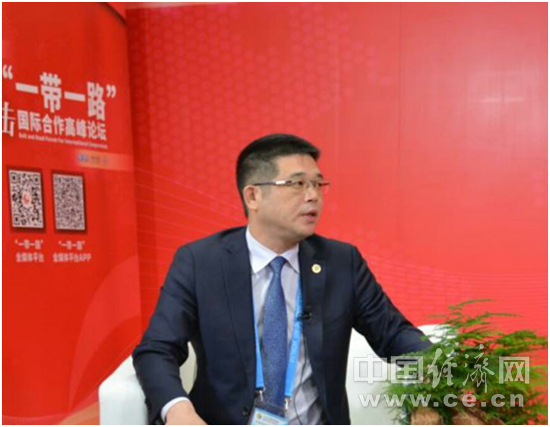 图为九牧董事长林孝发在‘一带一路’国际合作高峰论坛新闻中心接受中国经济网记者专访。