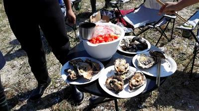 中文版的“挖蚝宝典”更为详细:“最好找导游带着,不要单独去抓;要穿合适的衣服,带好装备与食物;出于安全起见,记好涨潮与落潮的时间,带好专业GPS;牡蛎(生蚝)壳很锋利,开启时注意安全;新鲜的标准:开启时有阻力,乳白色的肉盖满整个壳,闻起来只有‘海香’……”