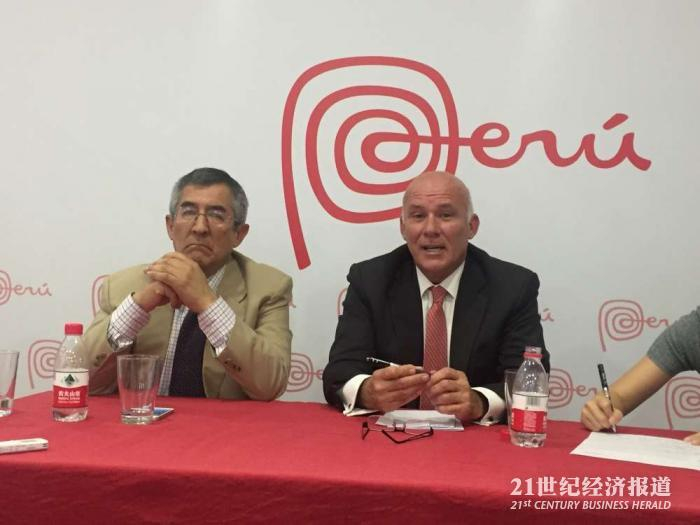 (注:左为秘鲁驻华大使 胡安·卡洛斯·卡普纳伊先生,右为秘鲁贸易旅游部长)