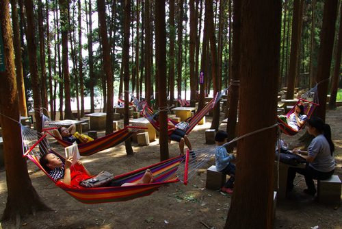 图为游客在方斗山林区避暑纳凉带动村民效仿增收