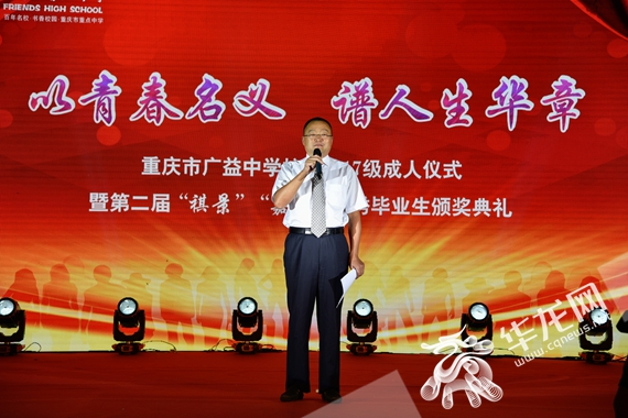 华龙网5月17日15时25分讯(王静)女生穿礼服优雅纯美,男生着正装绅士帅气,就连平日里一贯朴素的家长们都换上了华美的衣裳,共同见证孩子成长的关键时刻。16日晚,重庆市广益中学举行了盛大的成人礼仪式,全场千余名观众一齐为高三年级700余名学生庆祝他们的18岁,荧光棒的海洋点亮广益,感恩师长的肺腑之言令人动容,“高考加油”的呐喊声响彻南山。