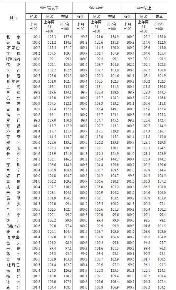 3、调查方法。70个大中城市的新建住宅销售价格、面积、金额等资料直接采用当地房地产管理部门的网签数据。二手住宅销售价格调查为非全面调查,采用重点调查和典型调查相结合的方法,按照房地产经纪机构上报、房地产管理部门提供与调查员实地采价相结合的方式收集基础数据。