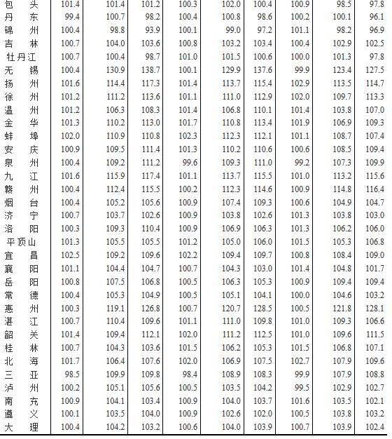 5、价格指数的计算方法详见中国统计信息网《住宅销售价格统计调查方案》。