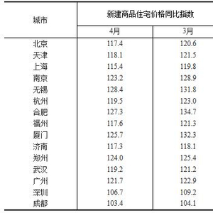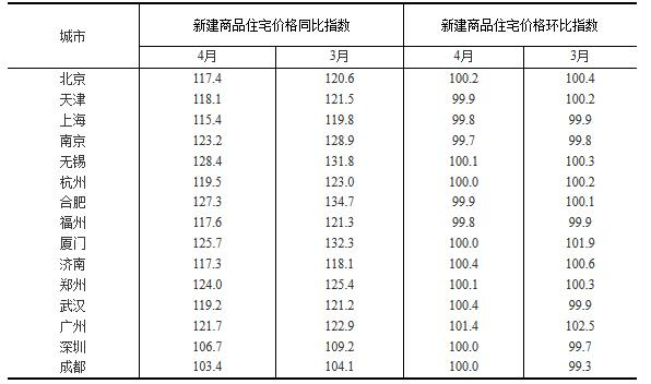 表1: 15个一线和热点二线城市新建商品住宅价格变动对比表