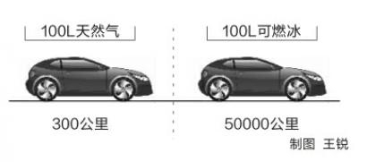可燃冰的最大特点就是能量密度高。它占用体积小,却蕴含大量的能量。举个例子,一辆使用天然气为燃料的汽车,一次加100升天然气能跑300公里的话,那么加入相同体积的可燃冰,这辆车就能跑5万公里。如果将同等体积的固体酒精和可燃冰同时点燃,可燃冰的燃烧时间远远长于同体积的固体酒精。可燃冰就像《变形金刚》中机器人争夺的“能量块”,占用体积小,蕴含的能量却不可估量。事实上,1立方米可燃冰可以分解释放出160立方米以上的天然气。