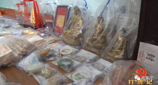 “政事儿”(微信ID:gcxxjgzh)在专题片中看到,邓全忠的受贿物品,占据了十余个玻璃展柜,包括象牙工艺品、书画长卷、玉器、佛像、手镯、金船,还有数十块手表和大量现金。