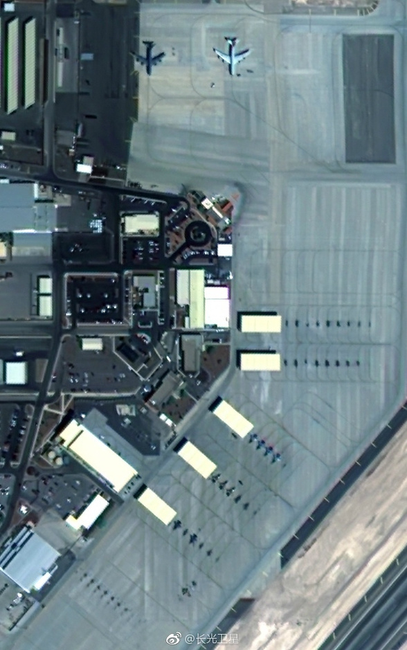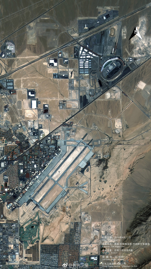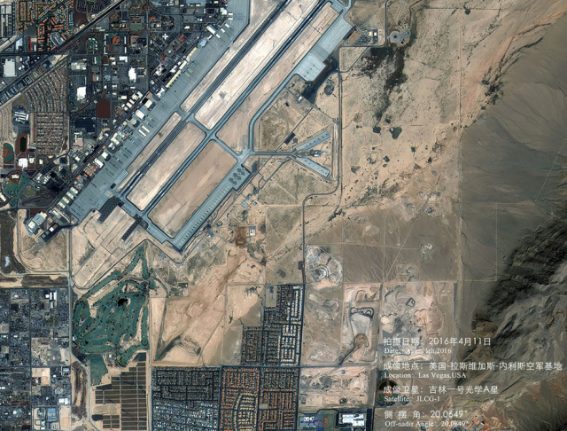 这是中国吉林一号卫星在太空中拍摄的美国内利斯空军基地的照片。