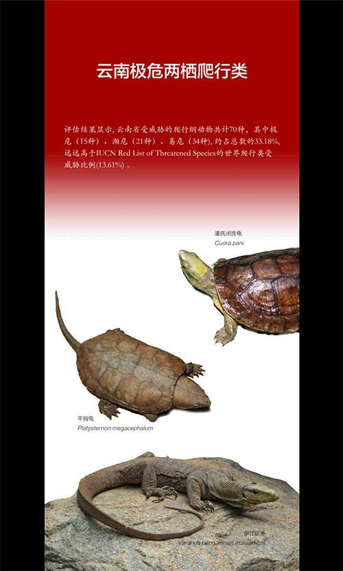 极危381种:巧家五针松、水松、贡山三尖杉、滇南苏铁、爪哇野牛、豚鹿、虎、林麝、金钱豹、西黑冠长臂猿、双角犀鸟、绿孔雀、赤颈鹤、蟒、凹甲陆龟、斑鳖等,占评估物种总数的1.50%;