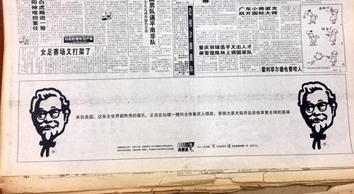 “开业当天,新店内370多个座位一直保持客满……”在1997年7月7日重庆晨报第二版头条位置刊登的新闻中这样写道:7月5日,在解放碑开张的美国肯德基,开始向重庆人展示其全球知名的炸鸡快餐,这是全球快餐巨头首次把触角深入重庆。