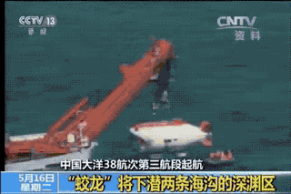 当地时间7时9分(北京时间5时9分),“蛟龙”号布放入水。