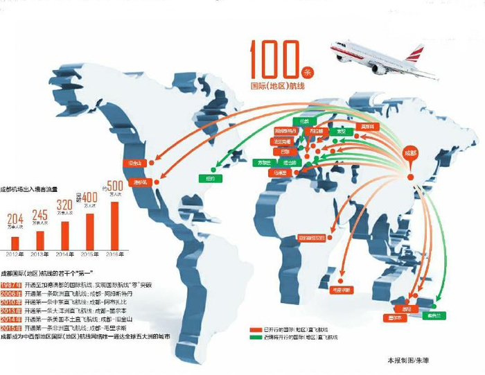 藏在100条航线里的密码 近5年成都航线数翻倍增长