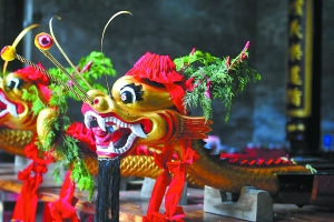 锣鼓声声迎端午,龙舟竞渡闹民俗。车陂村男女老少无不期待着龙舟赛事这一天。19日,村内的晴川苏公祠前鞭炮齐鸣、热闹非凡,有着150多年“扒龙舟”传统的车陂村在这里举办“采青”仪式,采摘新鲜龙眼叶、柏枝等祭祀品,并将红布扎成的彩球挂在龙头上,完成这一仪式标志着龙船已经完全“苏醒”。