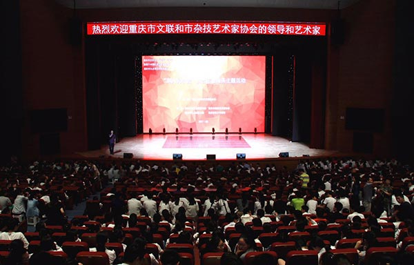 市文联党组成员、副主席龙川,重庆育才中学校长金永等出席。文艺慰问演出活动由市杂技艺术家协会秘书长夏俊主持。