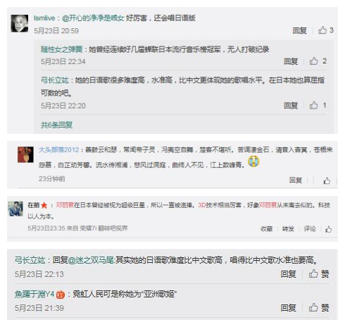 邓丽君曾被日本人民称为“亚洲歌姬”,曾经蝉联日本流行音乐榜冠军的记录无人打破,在亚洲歌坛的地位无人能及,微博网友的评论也都充满了怀念与崇敬之情。