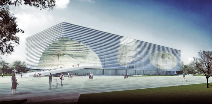 在设计方面,长春文化中心“一轴七馆”图书馆面向剧院的前广场连通门厅灰空间,将主要阅览人流引入二层以上;一层以及地下设置为空间较开放、自由的商业功能。图书馆内部,错动的庭院与节点空间活跃室内氛围,结合均质的核心筒组织交通,并形成错位贯穿的视觉通廊。同时室内空间节点相应的外立面表皮更加通透,内外逻辑一体化。长春文化中心“一轴七馆”之中图书馆将作为长春新区及周边区域公共知识供给服务体系的核心之一,健全完善长春新区公共文化服务功能,为构建学习型社会提供必须的场所。