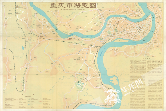 1976年《重庆市游览图》,当时的重庆城市主要范围 重庆市地理信息中心供图 华龙网 发第三次拓城,是改革开放之后,重庆城市经济活力和规模提升,城市区域快速拓展,石板坡长江大桥、石门大桥等两座江大桥建成通车,重庆城市往长江以南和嘉陵江以北加速拓展。