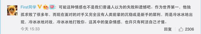 在柯洁的泪水中,很多网友看到了人类和人工智能的最大区别:情感。