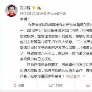 今天有媒体陆续曝出我在新加坡赌场欠资的新闻,现就相关情况声明如下: