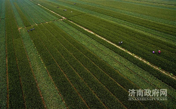 从空中看,全镇7万亩大蒜种植基地遍地黄金甲