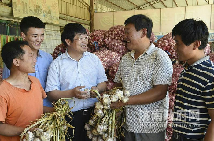 白桥镇镇长付士刚在大蒜收购市场调研市场情况