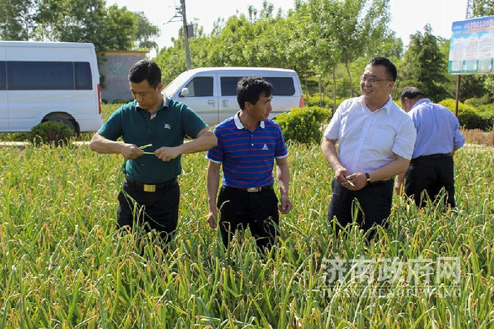 白桥镇党委书记陈爱国在田间地头就地解决蒜农的实际问题