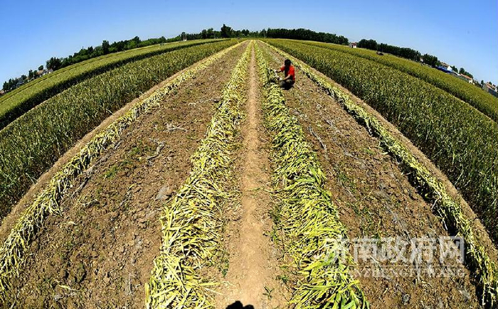 蒜农在紧张的收割大蒜