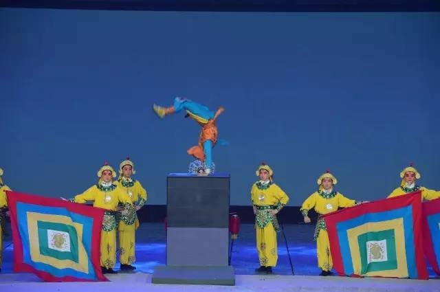 之后,五对小演员在锣鼓声中跑上,表演京剧《三岔口》中的精彩对打片段, 14岁小演员牛宝童原地做30个小翻,他是目前国内唯一能完成此动作的小演员。
