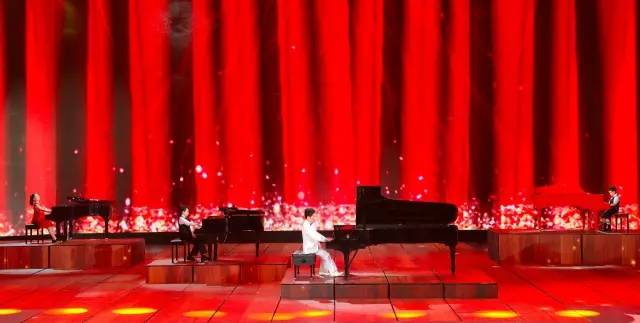钢琴与合唱《我的祖国》由青年钢琴家沈文裕、三位钢琴少年和100名银河少年电视艺术团的孩子共同完成。乐曲前半部分是沈文裕的钢琴独奏,随后由3个孩子加入重奏,4架钢琴共同演奏,以三重奏的编配手法烘托主题。
