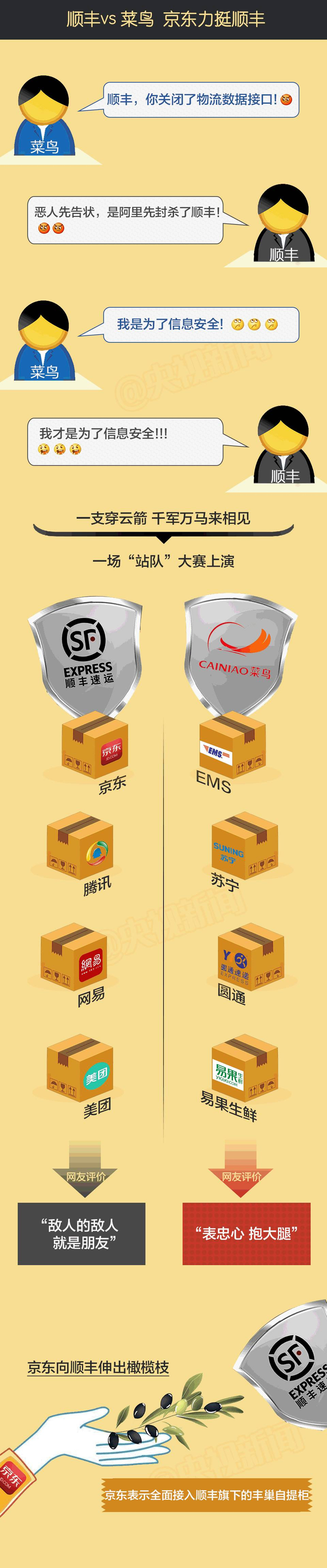 实际上,顺丰与“菜鸟”积怨已久,快递业的江湖早已是刀光剑影、短兵相接。