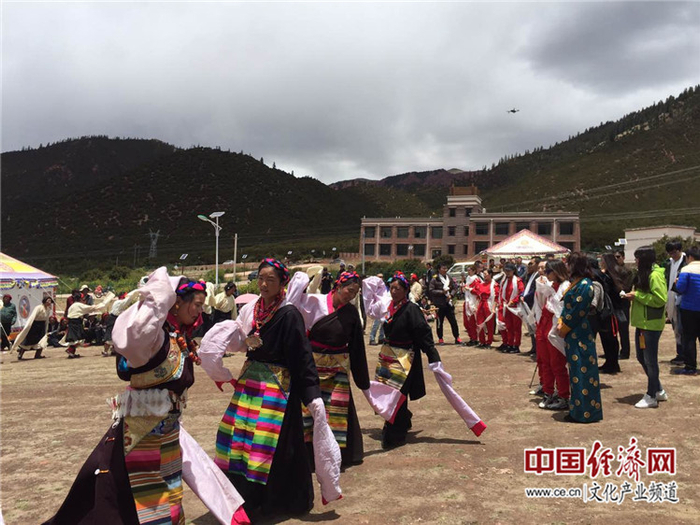 弦子舞。藏族称“谐”。弦子舞是藏族人民生活中不可缺少的一种自乐性歌舞。在节庆、婚嫁、集会时,人们欢聚一堂,舞时围成圆圈,领舞者边歌边舞,拉着弦子(藏族一种拉弦乐器)伴奏,余者随之,时而向圈内聚拢,时而散开,双手甩动长袖,动作优美。2006年5月20日,弦子舞经国务院批准列入第一批国家级非物质文化遗产名录。