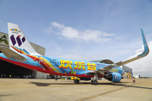 全球首架欢乐谷主题飞机六一首航 顺利飞抵重庆