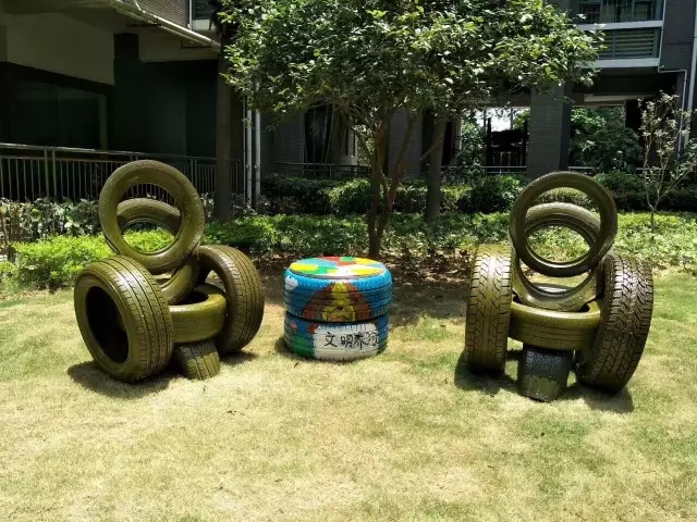 光大物业景湖名郡管理处经理胡家勇说:“在清理小区的废品时,我们发现有不少业主将轮胎扔在车库,当废品卖不了几个钱,就寻思着怎么把它们改造,再度利用起来。”