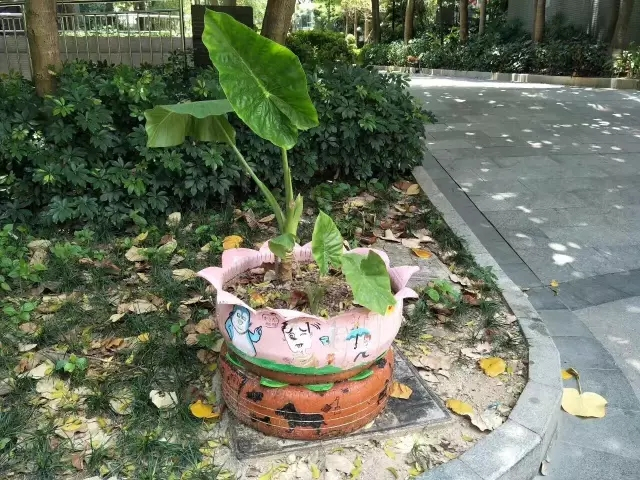 目前,在景湖名郡已经放置了11个轮胎装饰品,在造型制成后,胡家勇还特地邀请到小区的美术培训机构的老师,为这些轮胎装饰品涂鸦,很快老师的带领着小区的孩子们完成了这些作品,仿佛为它们穿上五颜六色的“外衣”