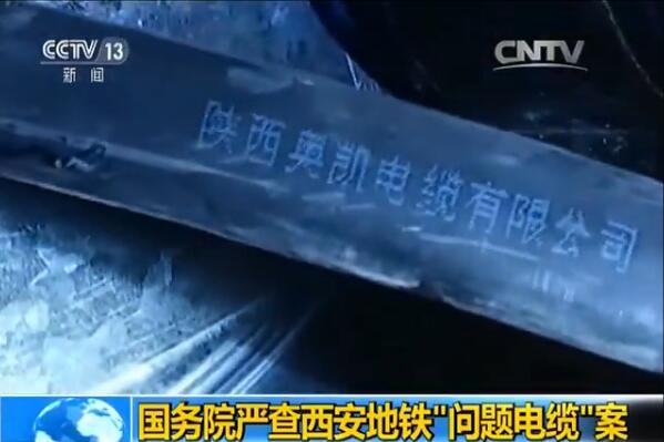 3月20日晚,西安市政府召开新闻发布会,公布西安地铁3号线所使用5种规格的由陕西奥凯电缆有限公司生产的电缆取样送检结果均不合格。随着供应商奥凯公司被曝光,更多的质量隐患事件也浮出水面。3月21日晚西安电视台播出的画面显示,西安地铁问题电缆公司负责人王志伟在镜头前跪地道歉。
