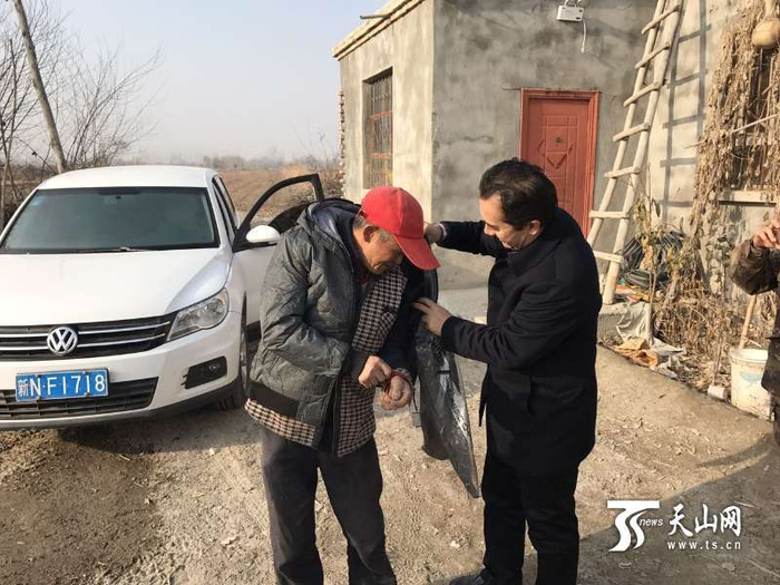 爸爸(右)特意给杨叔叔带去了一件小棉衣。