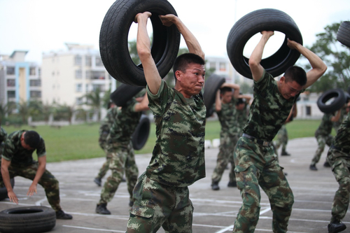 武警海南省中队特战队员在“魔鬼周”训练中。