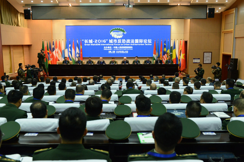 武警部队“长城”城市反恐战法国际论坛2016年11月下旬在武警特警学院落下帷幕,来自俄罗斯、法国、智利、巴基斯坦、埃及等26个国家军队、警察和宪兵部队120余名代表,围绕城市反恐战法进行了深入研讨交流。